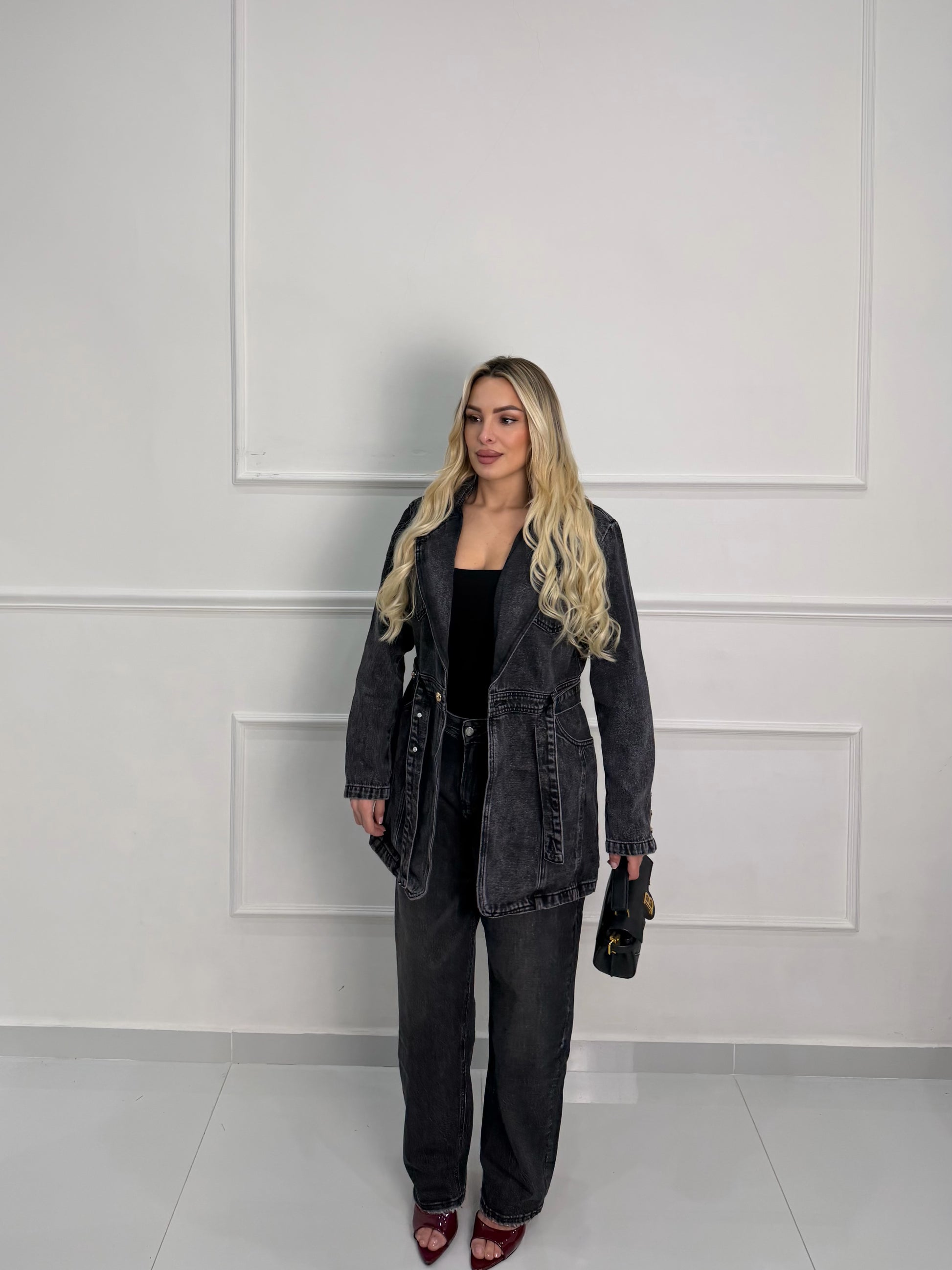 Giacca in denim lunga con spacchetti hai lati